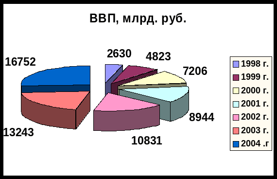 | ВВП, млрд. руб. | 2630 | 4823 | 7206 | 8944 | 10831 | 13243 | 16752 |