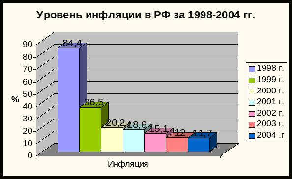 | Инфляция, % | 84,4 | 36,5 | 20,2 | 18,6 | 15,1 | 12,0 | 11,7 |