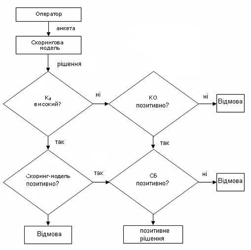 Далі на наступному етапі експертна скорингова модель оцінки ризиків повинна видати рішення.