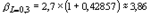 Наприклад, β -коефіцієнт підприємства, що не має позикового капіталу, дорівнює 2,7. Якщо керівництво підприємства захоче залучити позикові засоби, довівши їхню частку в загальній ринковій вартості свого ринкового капіталу до 30% (тобто відношення D / S складе 0,42857 (0,3/0,7)), то ринок дасть наступну оцінку β -коефіцієнту підприємства: