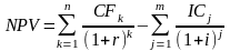 Если проект предполагает не разовую инвестицию, а последовательное инвестирование финансовых ресурсов в течение m лет, то формула для расчета NPV модифицируется следующим образом: