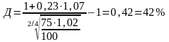 Облигация, приносящая 23S% годовых относительно номинала, куплена по курсу 75R. Срок погашения 2Т года. Рассчитать полную доходность для инвестора, если номинал и проценты выплачивают в конце срока.