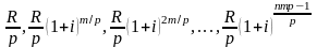 Данный ряд представляет собой геометрическую прогрессию со знаменателем (1+i)m/p, первым членом прогрессии R/p и числом членов прогрессии nmp.