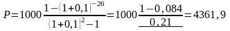 Подставив все заданные в задаче данные в формулу можем рассчитать современную стоимость финансовой ренты: