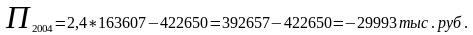 Для отчетного 2004 года критический объем продаж составил 423 239 единиц изделий на сумму 1 015 773,6 тыс. руб., что является в несколько раз выше, чем фактический объем реализации (163 607 ед. = 392 657 тыс. руб.).