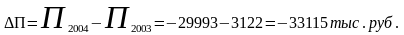 В 2004г. прибыль от реализации продукции уменьшилась на 33 115 тыс. руб. по сравнению с 2003 г. Методом цепных подстановок рассмотрим, какое влияние на это изменение оказали факторы: