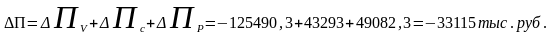За счет уменьшения объема реализации на 59 757 единицы, прибыль уменьшилась на 125 490,3 тыс. руб.