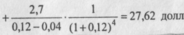 Величина ожидаемого дивиденда пятого года будет равна: 2,6 • 1,04 = = 2,7 долл. По формуле (8.9):