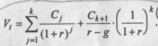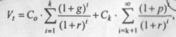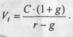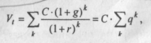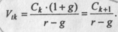 Предполагается, что базовая величина дивиденда (т.е. последнего выплаченного дивиденда) равна С; ежегодно она увеличивается с темпом прироста g. Например, по окончании первого года периода прогнозирования будет выплачен дивиденд в размере С •( 1 + g) и т.д. Тогда формула (8.1) имеет вид: