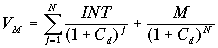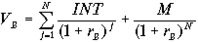 где INT - ежегодная процентная выплата по облигации, М - номинальная стоимость облигации, VB - современная (настоящая) стоимость облигации, N - количество периодов (лет) до погашения облигации, rВ - процентная ставка по облигации.