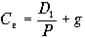 где Се - стоимость собственного капитала, Р - рыночная цена одной акции, D1 - дивиденд, обещанный компанией в первый год реализации инвестиционного проекта, g - прогнозируемый ежегодный рост дивидендов.