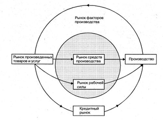 Рынок в целом представляет собой систему отдельных взаимосвязанных рынков (рис. 1). Кредитный рынок наряду с другими – одна из составляющих «большого» рынка. Взаимосвязь различных рынков, их взаимодействие и влияние друг на друга обеспечивают функционирование и устойчивость рынка в целом. Взаимосвязь элементов рынка представлена на рис. 2.