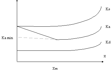является показателем степени финансового риска. С увеличением значения x стоимость заемного и собственного капитала растет. Исследователи, разделяющие традиционные взгляды утверждают, что стоимость (ставка доходности) собственного капитала фирмы резко растет, начиная с некоторого значения xm (см. рис. 2). Основное предположение традиционного подхода (traditional approach) заключается в том, что существует такое значение коэффициента структуры капитала x, при котором средняя стоимость капитала достигает ярко выраженного минимума (на рис. 2). [7, с.102]