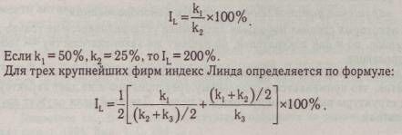 Применяется в Европе (в странах ЕС). Этот индекс, как и индекс концентрации, рассчитывается лишь для нескольких (т) крупнейших фирм и, следовательно, также не учитывает ситуации на «окраине» рынка. Однако в отличие от него индекс Линда ориентирован на учет различий в «ядре» рынка.