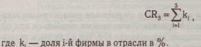 Характеризует долю нескольких (трех, пяти, десяти и т. п.) крупнейших фирм в общем объеме рынка в процентах. Определяется как сумма рыночных долей крупнейших фирм, действующих на рынке.