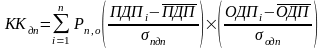 где ККдп – коэффициент корреляции положительного и отрицательного денежных потоков во времени, Рп,о – прогнозируемые вероятности отклонения денежных потоков от их среднего значения в плановом периоде, ПДПi – варианты сумм положительного денежного потока в отдельных интервалах планового периода,