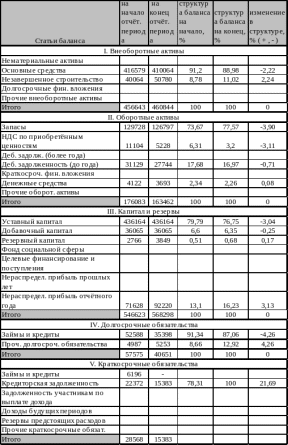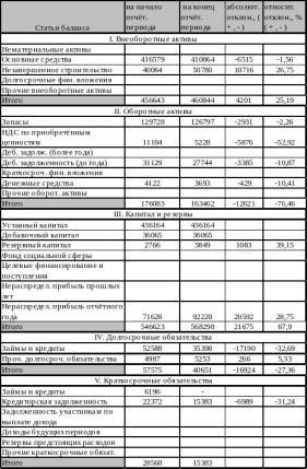 1. Горизонтальный анализ баланса позволяет определить общее направление изменения финансового состояния предприятия. При этом, прежде всего, сравнивают итог баланса на конец периода с итогом на начало года. Если итог баланса растёт, то финансовое состояние оценивается положительно. Далее, определяют характер изменения отдельных статей баланса. Положительно характеризует финансовое состояние предприятия увеличение в активе баланса остатков денежных средств, краткосрочных и долгосрочных финансовых вложений, нематериальных активов и производственных запасов. К положительным характеристикам финансового состояния по пассиву относится увеличение суммы прибыли, доходов будущих периодов, фондов накопления и целевого финансирования, к отрицательным – увеличение кредиторской задолженности в пассиве.