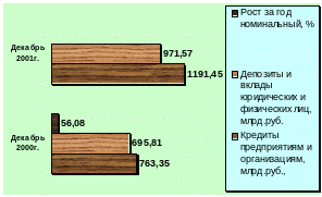 | Показатель | Декабрь 2000г. | Декабрь 2001г. | Рост за год номинальный, % | Рост за год в реальном выражении, % |