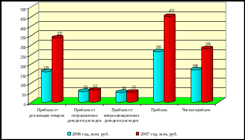 Операционные доходы РСФ Октябрьского района ОАО «Минскремстрой» увеличились на 8 млн. руб., операционные расходы – на 2 млн. руб. Прибыль от операционных доходов и расходов увеличилась по сравнению с 2006 г. на 6 млн. руб. Внереализационные доходы снизились на 1 млн. руб., внереализационные расходы – на 3 млн. руб. Прибыль от внереализационных доходов и расходов увеличилась по сравнению с 2006 г. на 2 млн. руб.