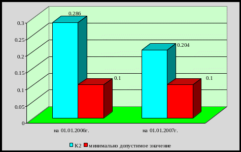 | Коэффициент обеспеченности собственными оборотными средствами К2=(стр.590+стр.690-стр.190)/стр.290 | 0,286 | 0,204 | К20,1 |