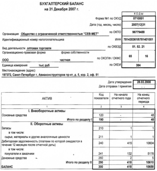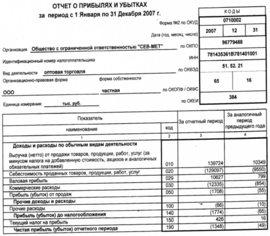 На основе финансовой отчётности ООО «СЕВ-МЕТ» - баланса и отчёта о прибылях и убытках за отчётные даты 2006 и 2007 года был произведён финансовый анализ. Поданным расчёта можно сделать заключительный вывод об организации ООО «СЕВ-МЕТ». Предприятие считается убыточным.