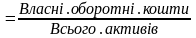 | Коефіцієнт загальної ліквідності (≥ 2) Коефіцієнт забезпеченості поточних активів власним оборотним капіталом (>0,1) Коефіцієнт відновлення платоспроможності (>1) Коефіцієнт втрати платоспроможності (>1) | ||