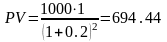 Визначити теперішню вартість дворічної ренти у 1000 гри. на рік, за дисконти 20%.