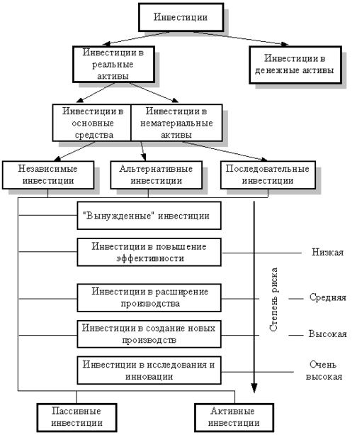 Рис. 1. Классификация инвестиций. Степень риска инвестиций.
