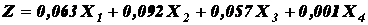 Z= 1.03X1+3.07X2+0.66X3+0.4X4.