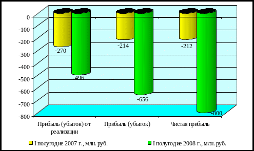 Прибыль от операционных доходов и расходов снизилась по сравнению с 6 мес. 2007 г. на 382 млн. руб., убыток от внереализационных доходов и расходов сократился на 156 млн. руб.