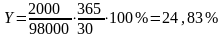 Рассчитайте доходность дисконтного векселя, если известно, что цена приобретения векселя составляет 98000 руб., до погашения векселя осталось 30 дней, величина дисконта - 2000 руб.