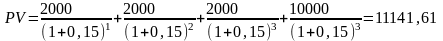 Номинальная стоимость облигации равняется 10000 руб., купон 20%, доходность до погашения – 15%, до погашения остается три года. Рассчитайте рыночную цену облигации.