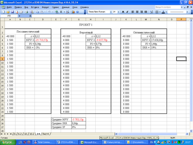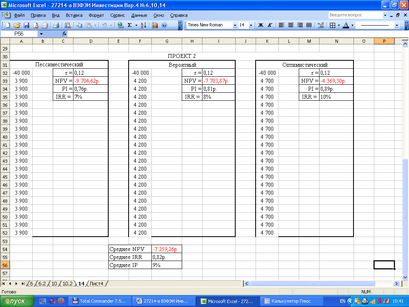 1. Определим критерии NPV, IRR, PI для каждого сценария и их ожидаемые значения.