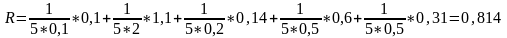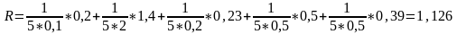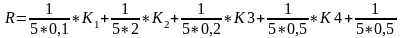 R = 2*K1 + 0,1*K2 + 0,08*K3 + 0,45*K4 + K5,