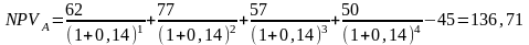 Таким образом, по убыванию показателя PI проекты упорядочены следующим образом: A, C, D, B.