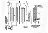 Рис.3. Схема установки с двумя трубчатыми реакторами для проведения процесса под давлением 2-5 ат: 1-циркуляционный насос, 2 – реакторы, 3- нагреватель, 4- сепараторы, 5- отдувочная колонна, 6- колонна концентрирования.