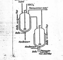 Выбор периодической или непрерывной схемы зависит в основном от требуемой производительности установки. В свою очередь, производительность определяется такими факторами, как способ отвода тепла реакции, время контакта реагентов, необходимое для завершения процесса окисления, а также время, необходимое для выделения из реакционной смеси нитрозных газов.