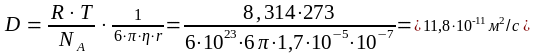 Коэффициент диффузии для сферической частицы рассчитывается по уравнению Эйнштейна: