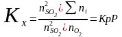 В данной реакции ΔV=2-3=-1, поэтому выражение для Кх примет вид: