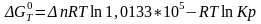 ΔG=-RTlnKp+RTПі(Pνіі исх.)