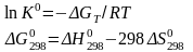 1. По значениям изобарных потенциалов в справочнике [M.] определите константу равновесия при температуре 298К для реакции: