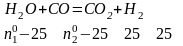 . При 1000К конст. равновесия равна 1,45. Какой состав должна иметь исходная смесь, сост. из водяного пара и СО, чтобы при 1000К равновесная смесь содержала по объёму 25%СО2 и 25%Н2 ?