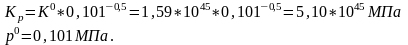 - если реакция проводится в стандартных условиях, то необходимо использовать PO=0,101Мпа=101,3кПа.