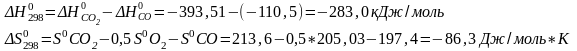 Вычислите при температуре 298К константу равновесия реакции CO+0,5O2=CO2 по стандартной энергии Гиббса.