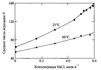 Число агрегации мицелл додецилсульфата натрия увеличивается с ростом температуры и концентрации введенных солей