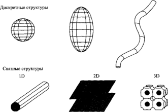 Самоорганизованные структуры ПАВ можно классифицировать на дискретные и связные формы. Связность может наблюдаться в одном, двух и трех измерениях