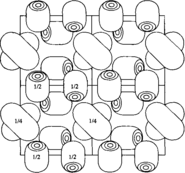 Схема Фонтелля, отражающая зависимость структур жидких кристаллов ПАВ от состава, иллюстрирует симметрию кривизны агрегатов относительно структуры ламелярной фазы и четыре положения основных кубических фаз