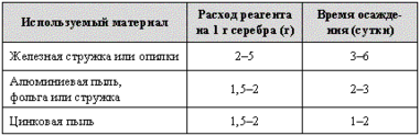 Химическим способом серебро можно извлечь из раствора либо переводом его в труднорастворимую соль Ag2S, либо восстановлением до металлического при помощи активного восстановителя.