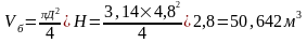 Объем бака с принятыми размерами Д=4800 мм и Н=2800 мм. равен: