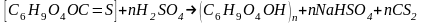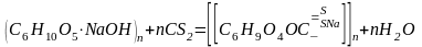 -  Ксантогенирование щелочной целлюлозы – обработка ее сероуглеродом в среде азота с целью получения растворимого в водном растворе полимера – ксантогената целлюлозы: